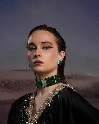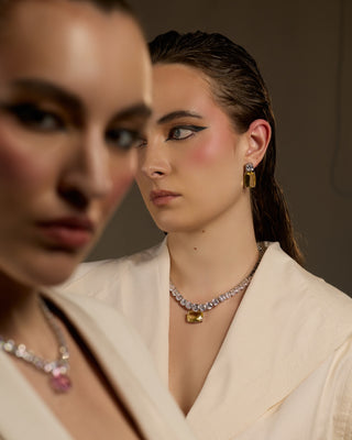 In LAYALI, light becomes jewellery. Sculpted forms and shimmering finishes mirror twilight’s mystery, creating necklaces that embody sophistication with timeless allure.