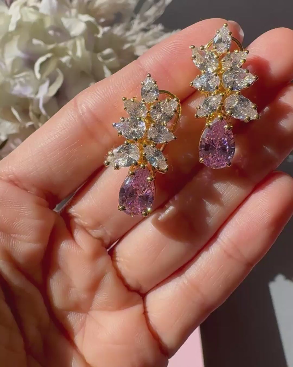 Be the centre of attention with our Khadeeja pink CZ earrings. The cubic zirconia adds extra sparkle to these unique earrings. Perfect for adding a touch of glam to any outfit. Shine on!
