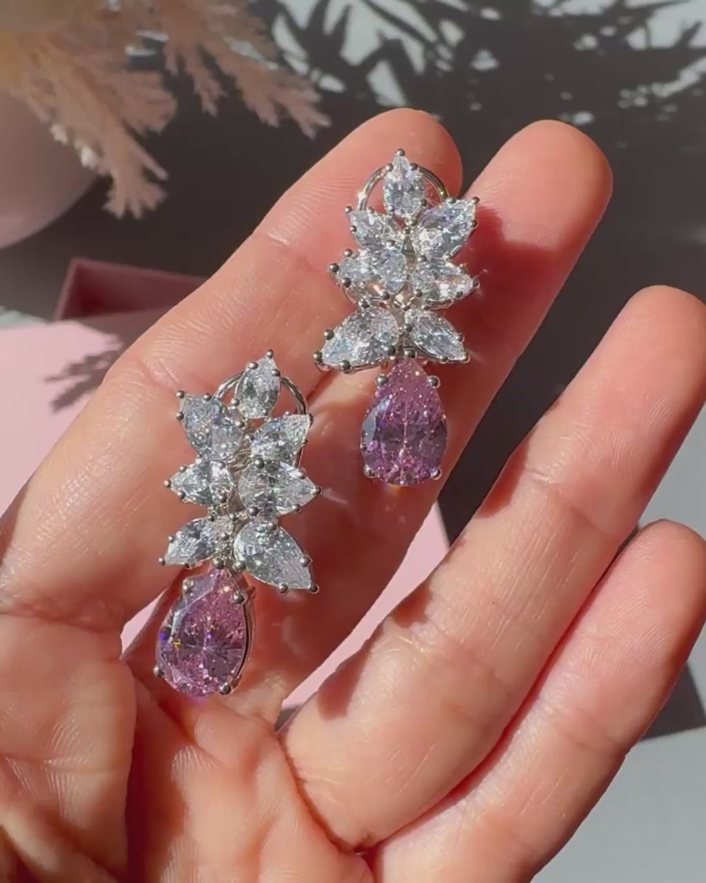 MATERIAL: Rhodium plated metal, Pink CZ, AAA CZ.