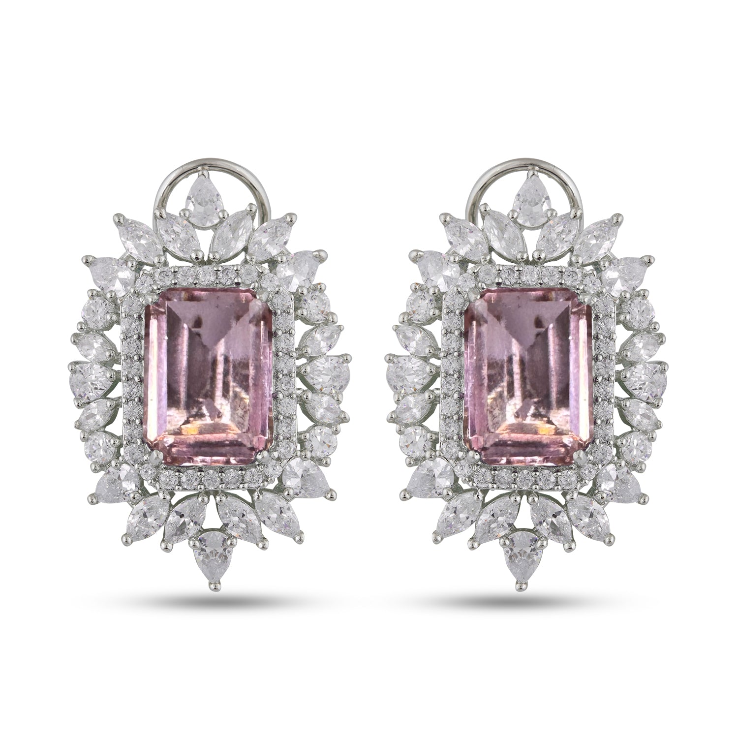 MATERIAL: Rhodium plated brass metal, doublet semi precious (quartz) stone, AAA CZ.
