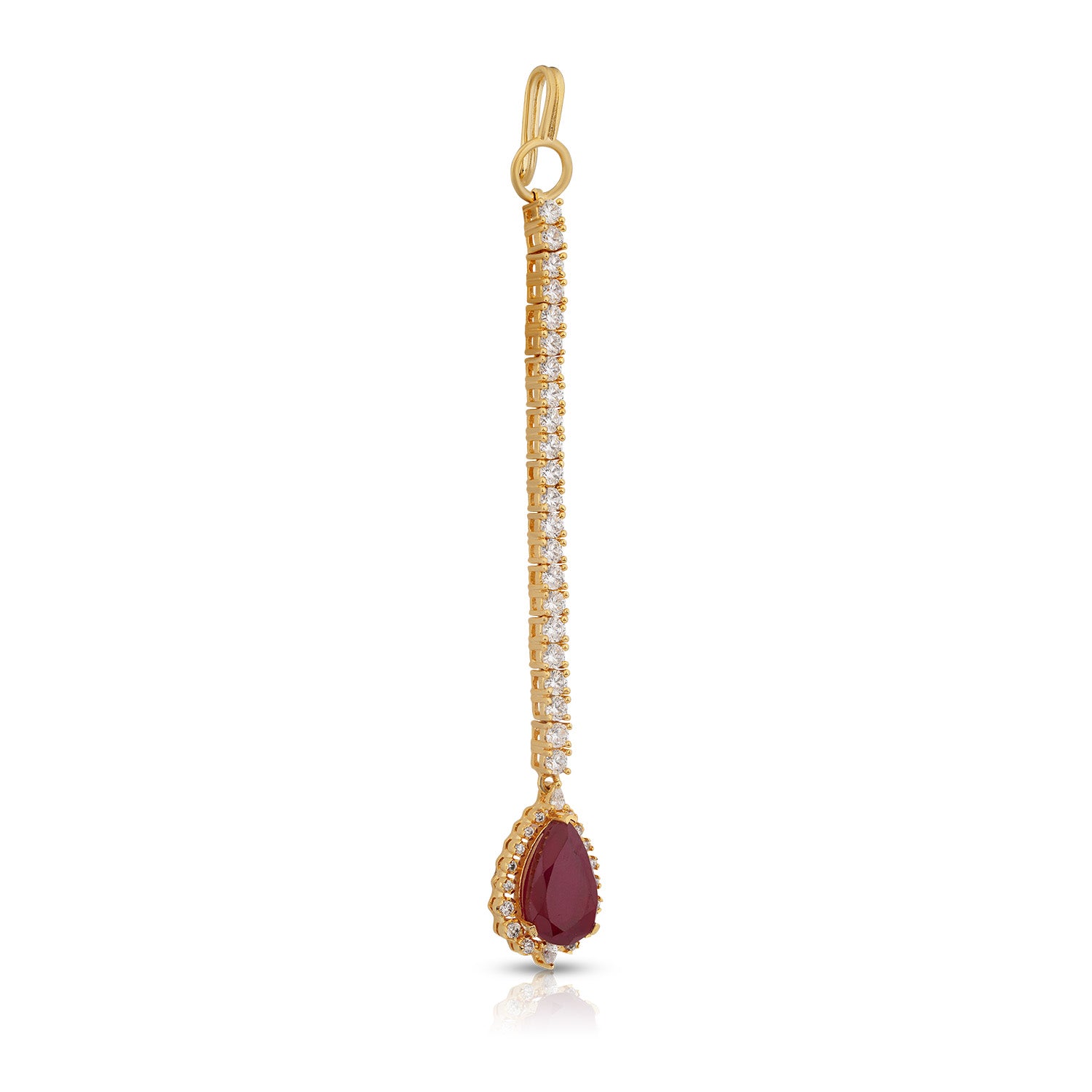 Ghadah - Cubic Zirconia Ruby Red Maang Tikka