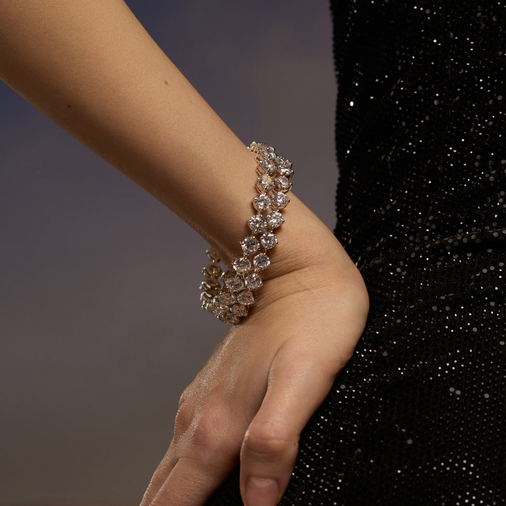 The Aurora Round CZ Bangle embodies the timeless beauty of simplicity. Crafted in a sleek silhouette, it features a continuous row of round-cut CZ stones, each meticulously set to catch the light from every angle. Its minimal yet striking design makes it a versatile piece — perfect for stacking with other bangles or wearing solo for understated elegance. A modern classic that transitions seamlessly from day to night.