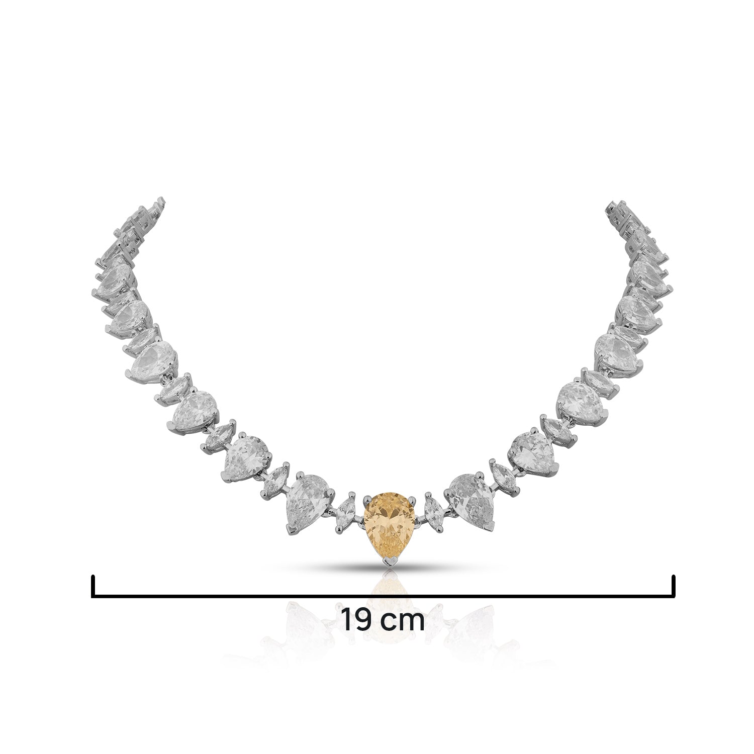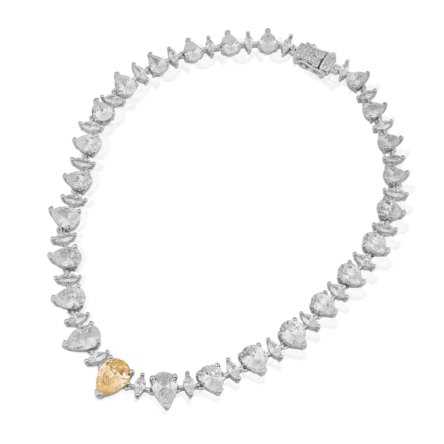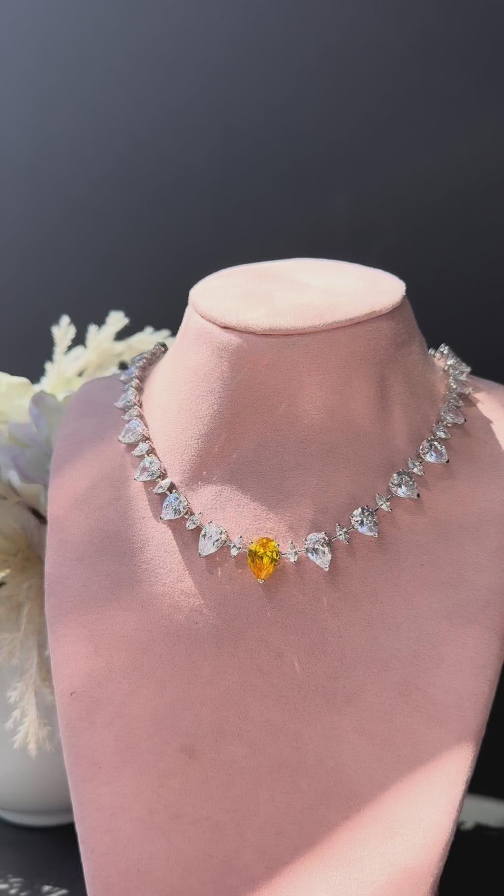 Elevate your look with the Blake necklace set featuring a stunning yellow stone and CZ accents. This contemporary piece adds a touch of elegance and modernity to any outfit. Perfect for adding a pop of color and shine to your ensemble.