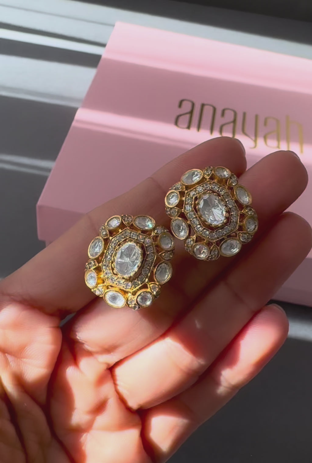 Introducing Naureen - the perfect addition to your jewelry collection! These traditional polki stud earrings are sure to add a touch of elegance and sophistication to any outfit. Elevate your style game with the stunning sparkle and timeless design of Naureen.