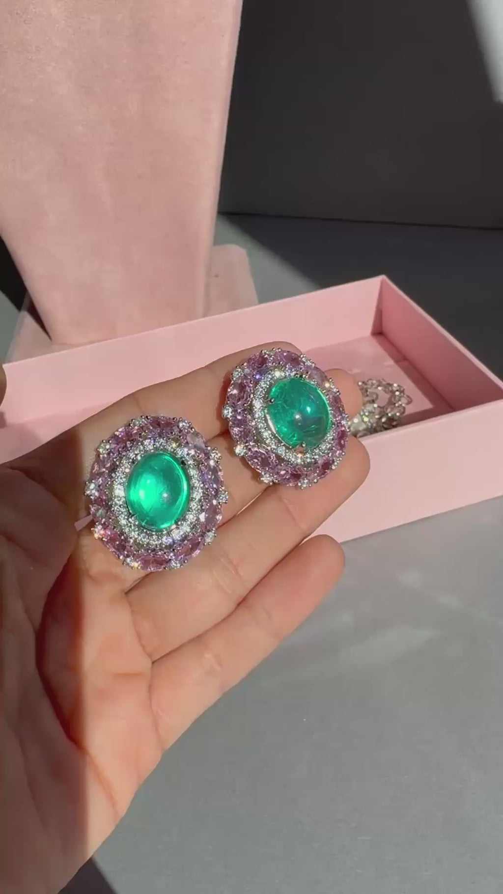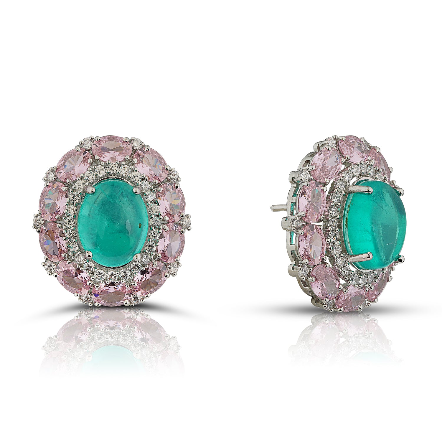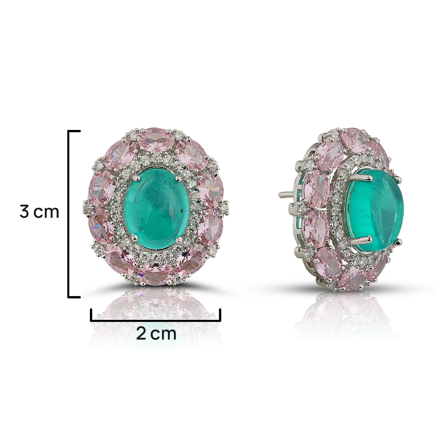 MATERIAL: Rhodium plated brass metal, Green Doublet stone, AAAAA CZ. Doublet stones often have natural cracks and imperfections, which are typical characteristics and not considered defects.