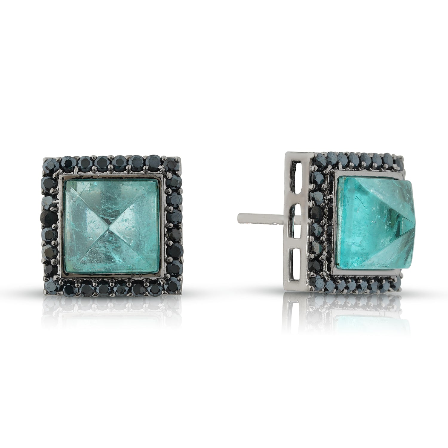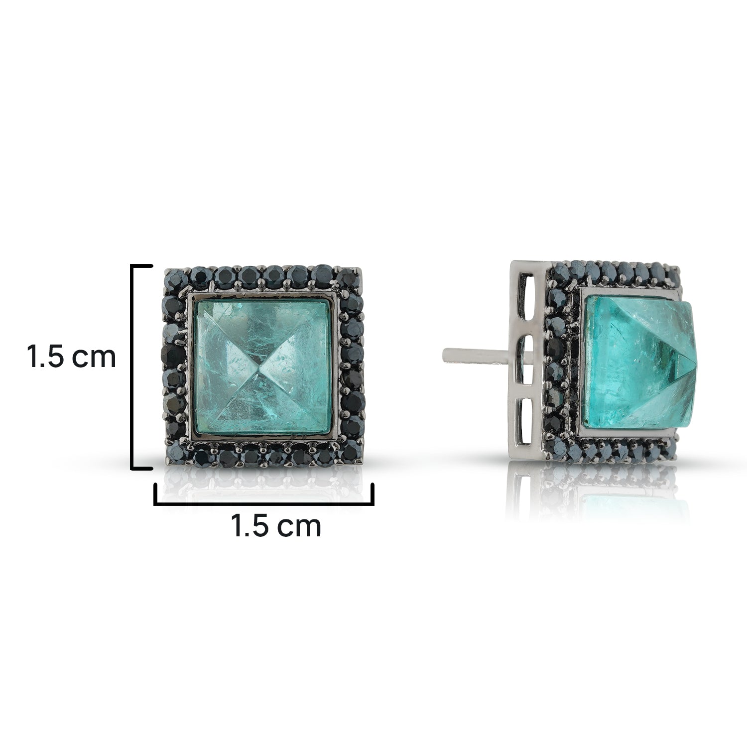 Accompanied by square-cut studs in the same arresting aqua, framed in black brilliance, the set carries an air of mystery — contemporary, bold, and unapologetically powerful. A piece that transforms restraint into radiance, meant for the woman who commands her story with every glance.