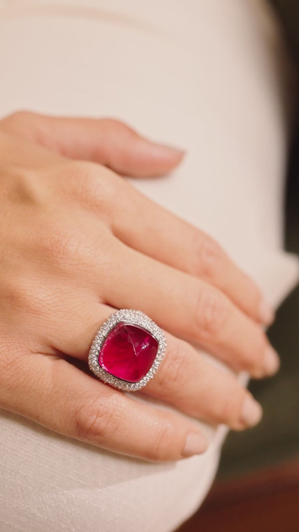 With its striking color and luminous design, Caroline is the kind of ring that commands attention and elevates any look — whether styled with evening glamour or worn as a statement piece in the everyday.