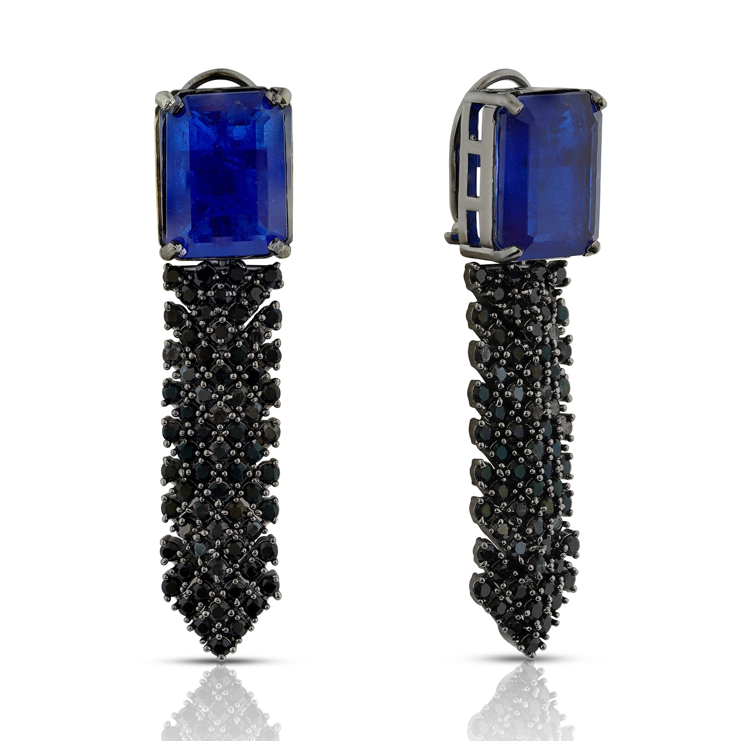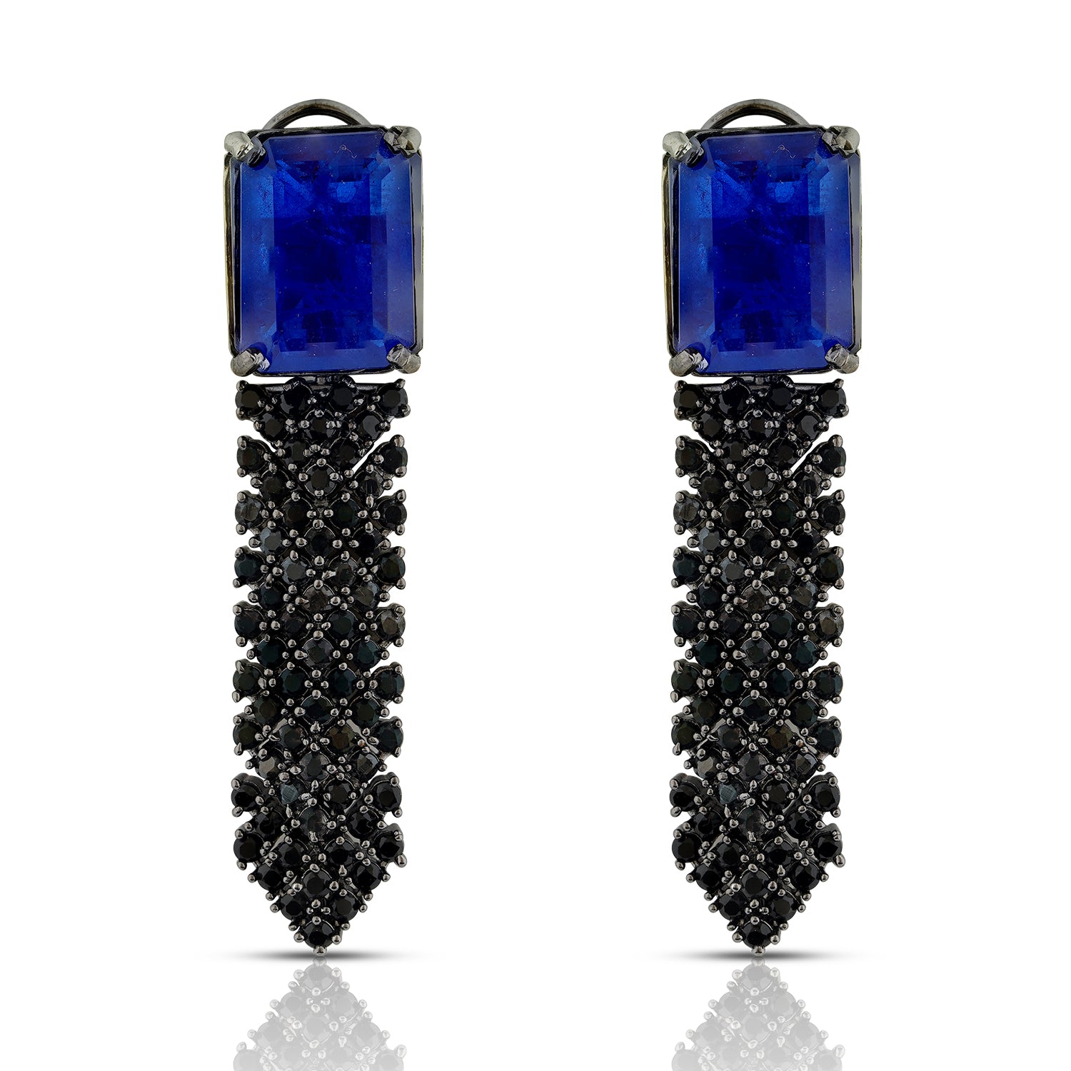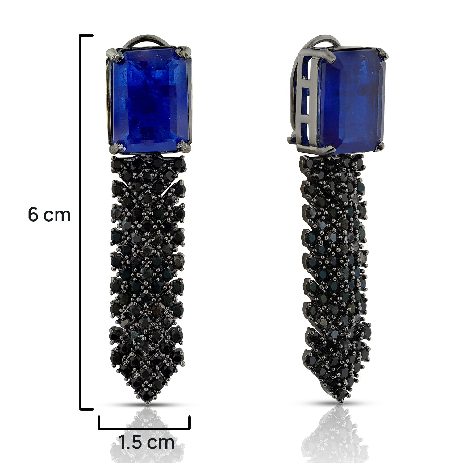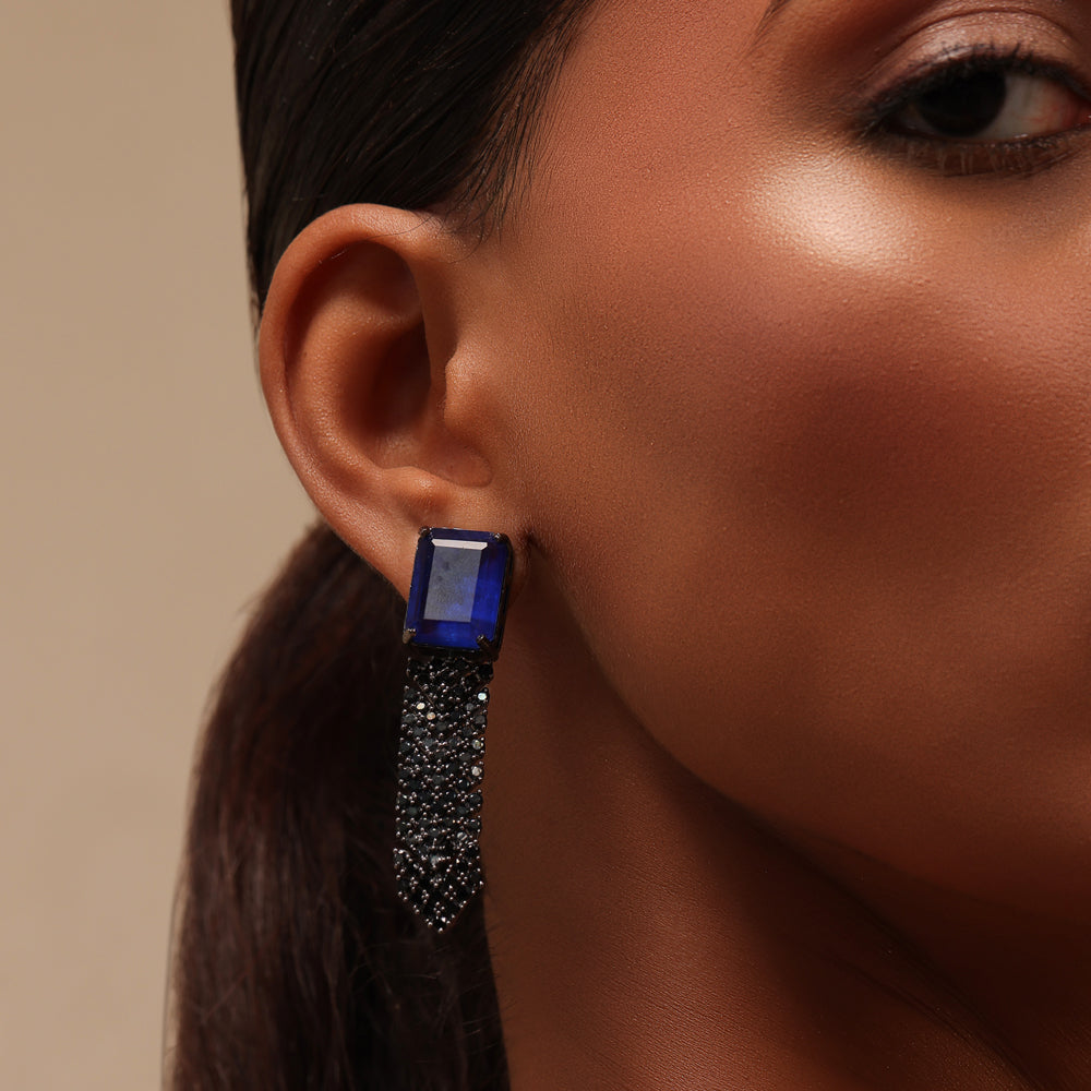 MATERIAL: Black plated brass metal, Blue Doublet stone, 5A CZ. Doublet stones often have natural cracks and imperfections, which are typical characteristics and not considered defects.