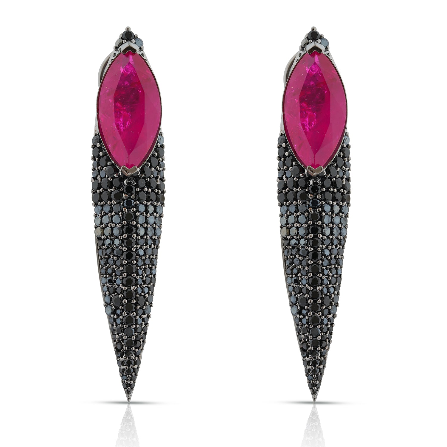 MATERIAL: Rhodium plated brass metal, Red Doublet stones, 5A CZ. Doublet stones often have natural cracks and imperfections, which are typical characteristics and not considered defects.