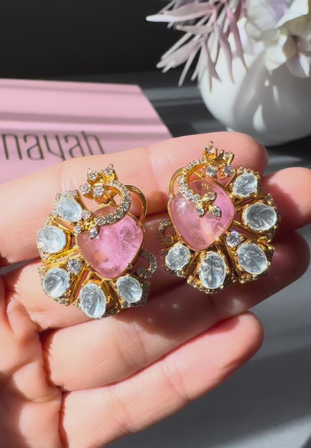 MATERIAL: Gold plated brass metal, Pink Doublet stones, AAA CZ. Doublet stones often have natural cracks and imperfections, which are typical characteristics and not considered defects.