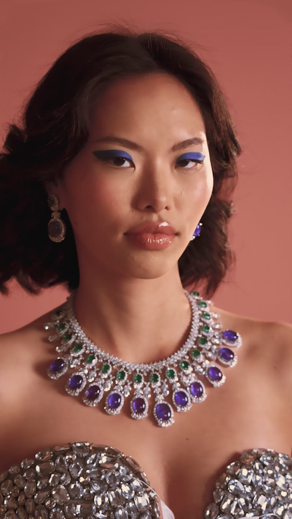 Spice up your look with the Azra necklace set! Showcasing vibrant emerald green and royal purple gems, accentuated by shimmering cubic zirconia, this set effortlessly elevates any ensemble.