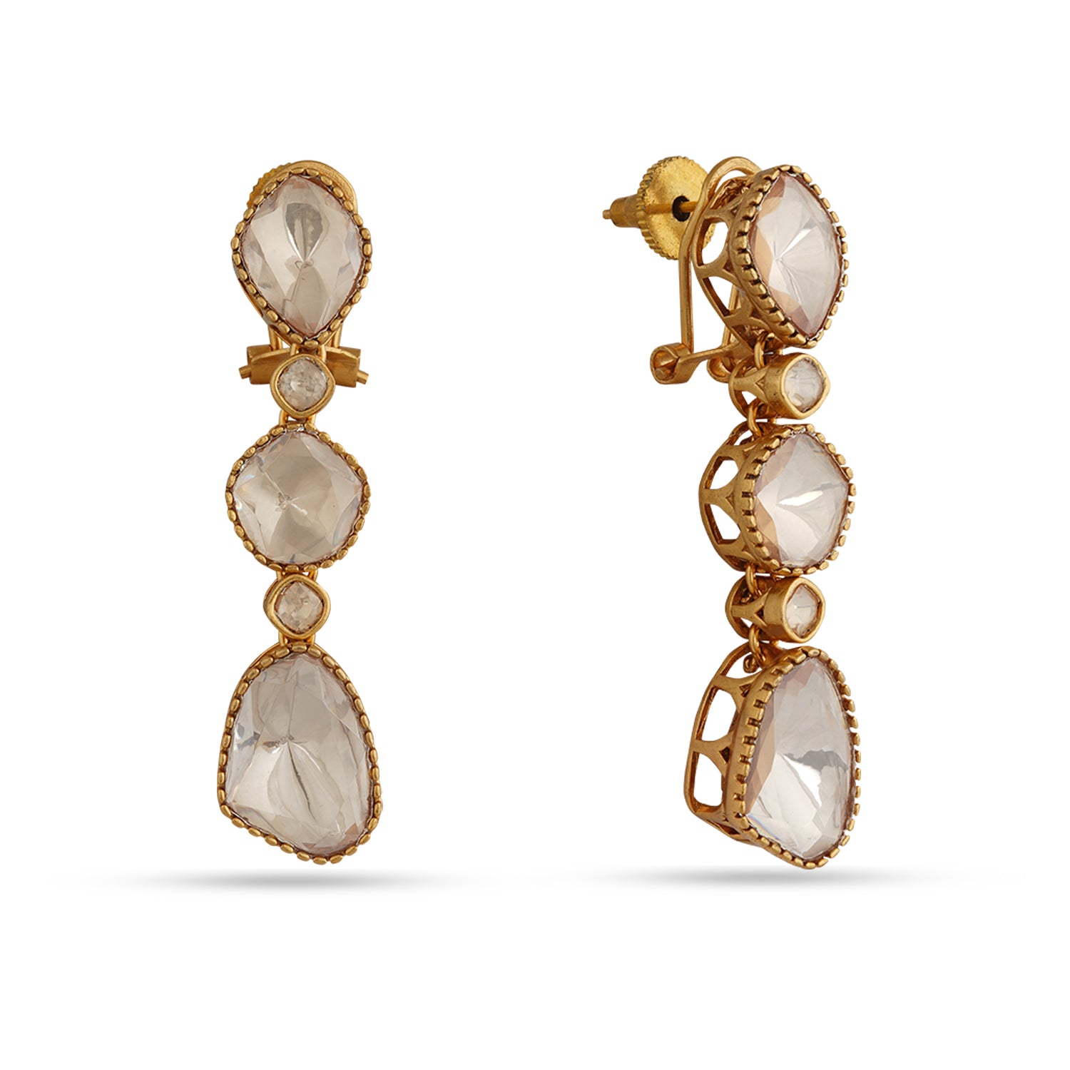 MATERIAL: Gold plated metal alloy, Moissanite Stone, Pure Silver foiling