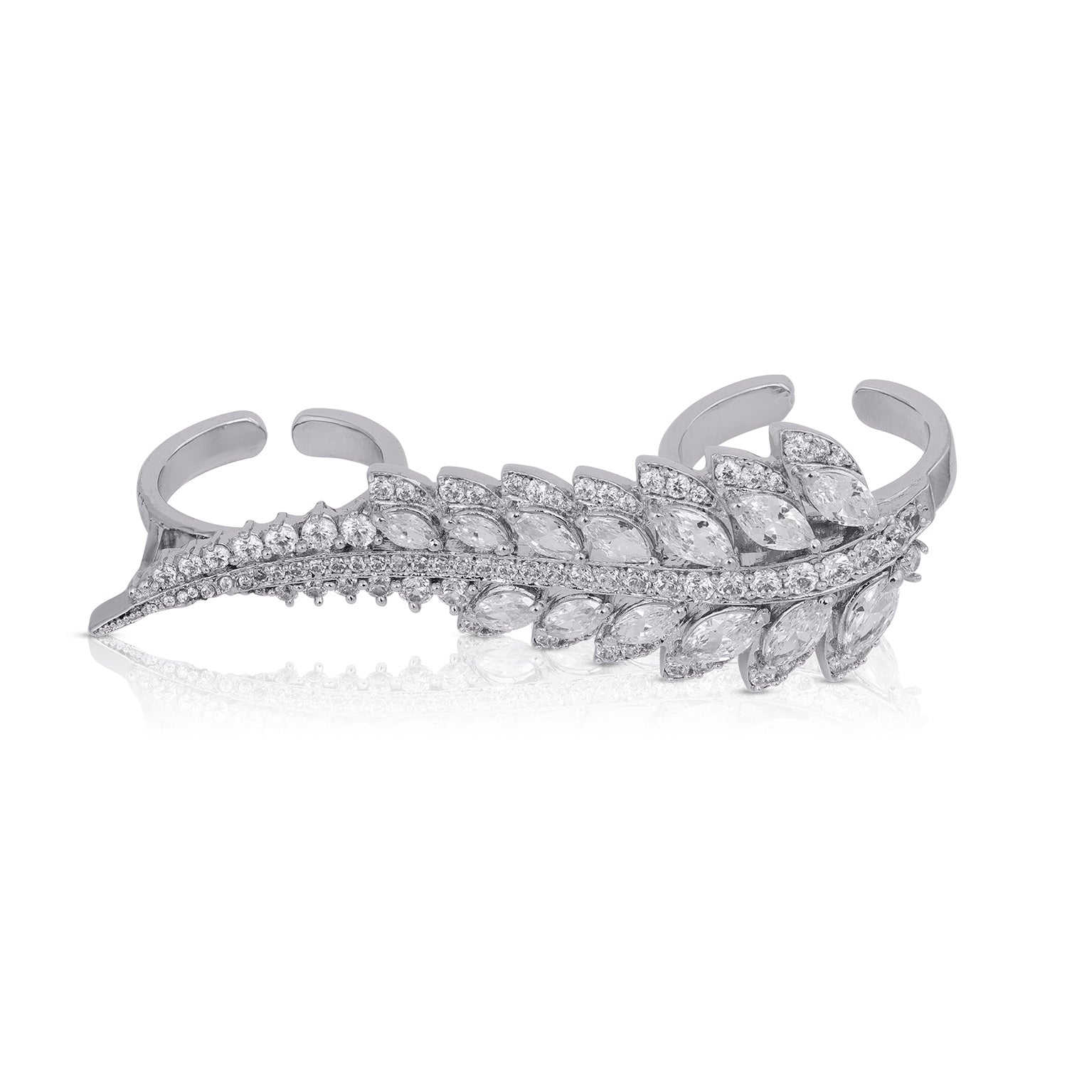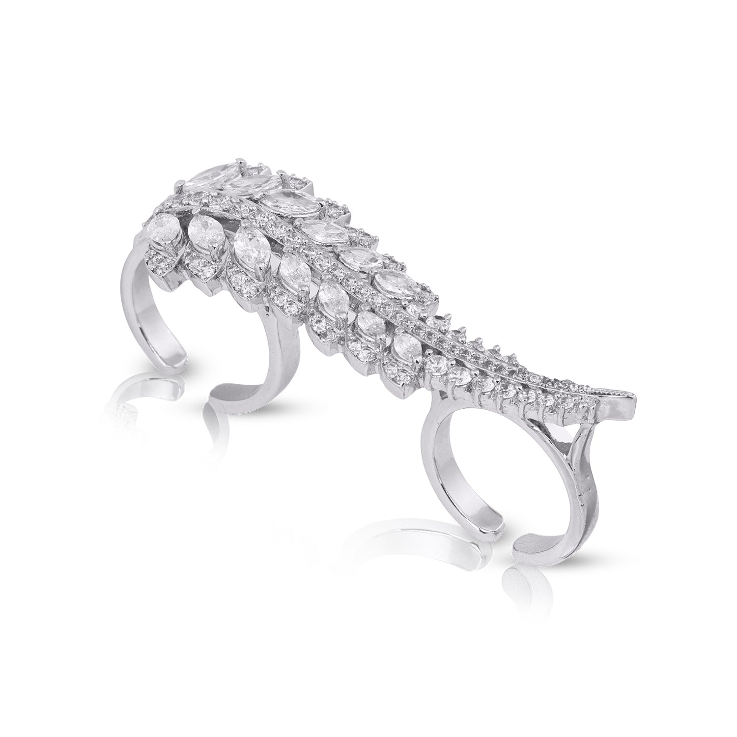 Graceful yet commanding, the Azalia Ring is designed to elongate the hand with effortless sophistication. A sweeping cascade of marquise-cut CZ stones forms a feather-like silhouette, set along a slender band that curves delicately around the finger.