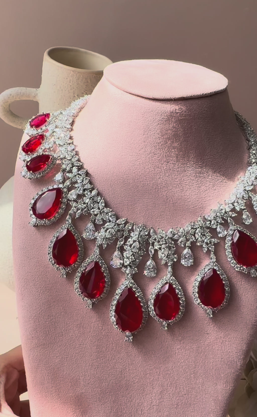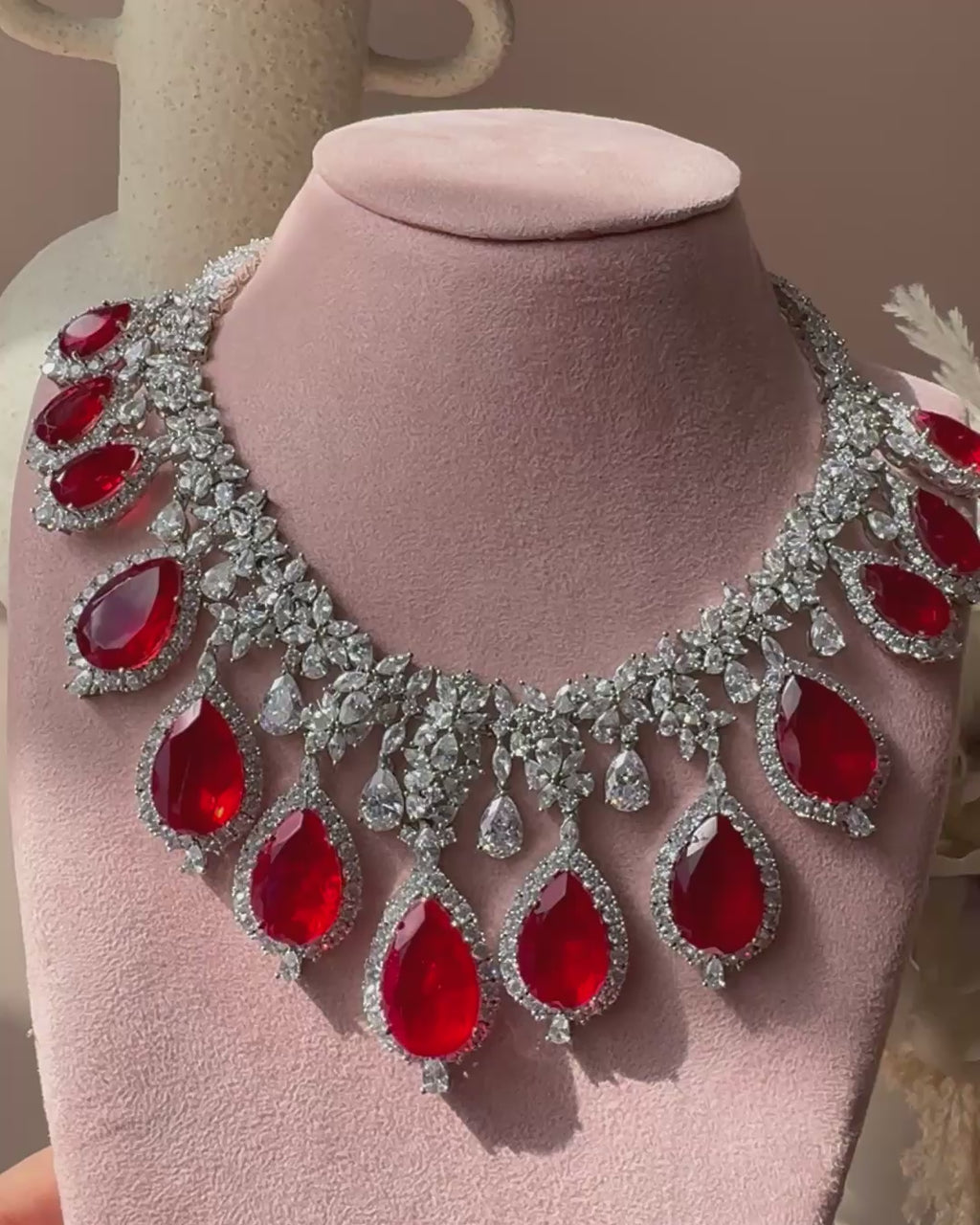 Look no further than Afroza! With its beautiful emerald green tear shaped stones and American diamond accents, Afroza is the perfect blend of elegant sophistication and show-stopping glamour.