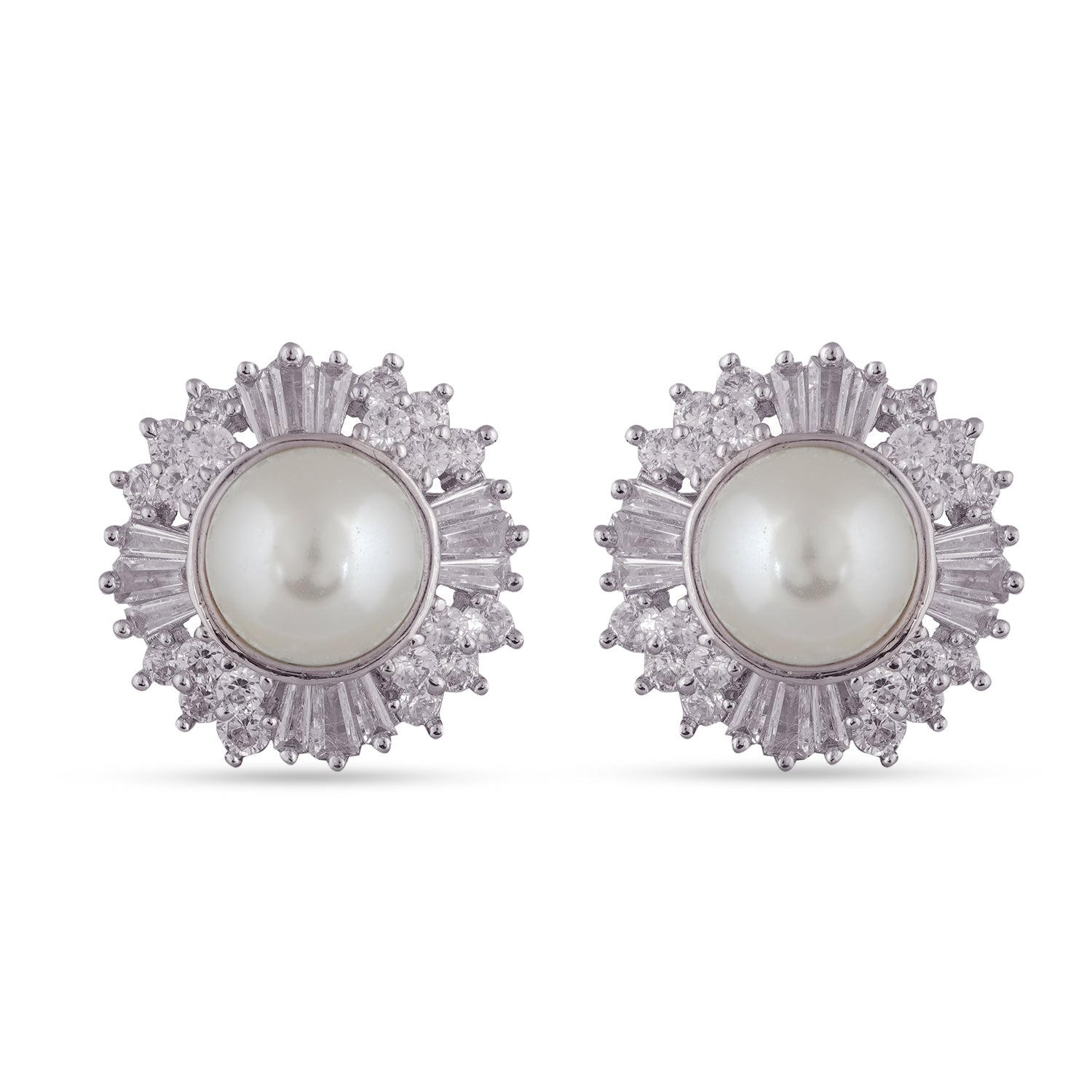 Anwara - Cubic Zirconia Pearl Stud Earrings