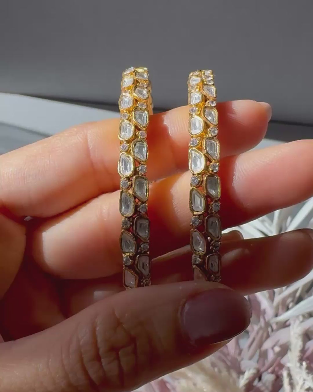 Add a touch of traditional charm with the Fadila kundan bangle. This elegant, gold-plated bangle is the perfect addition to any outfit. Bring out your inner diva and make a statement with this unique piece.