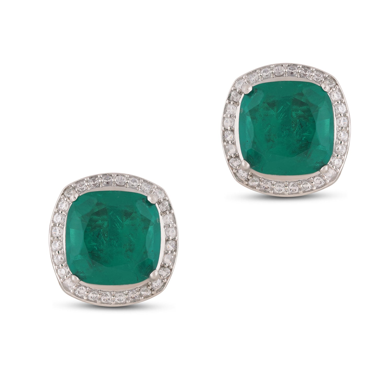 MATERIAL: Rhodium plated brass metal, doublet stone, cubic zirconia.