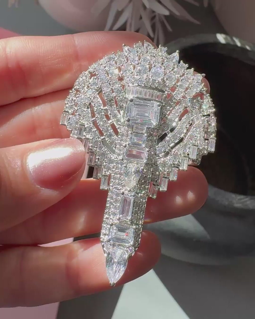 Make a statement with Noora CZ brooch. Sparkling cubic zirconia adds a touch of glamour to any outfit. Perfect for adding flair to a blazer or dress.