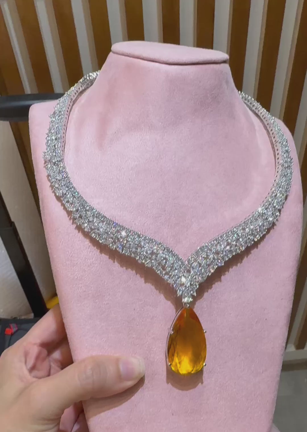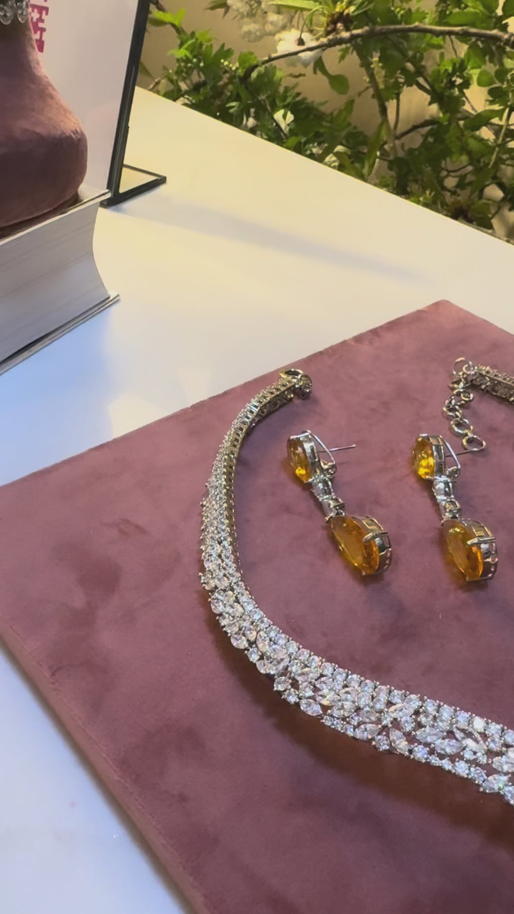 Get ready to shine with the Ziba necklace set! Featuring a stunning orange drop stone and dazzling cubic zirconia. Perfect for adding a pop of colour to your look.